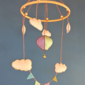 Liebevoll und sehr aufwendig von Hand gefertigtes Mobile aus wunderschönem weichen Filz. Kleine und große Wolken umringen den Heißluftballon und wiegen sanft hin und her. Die großen Wolken sind durch ...