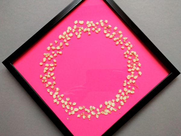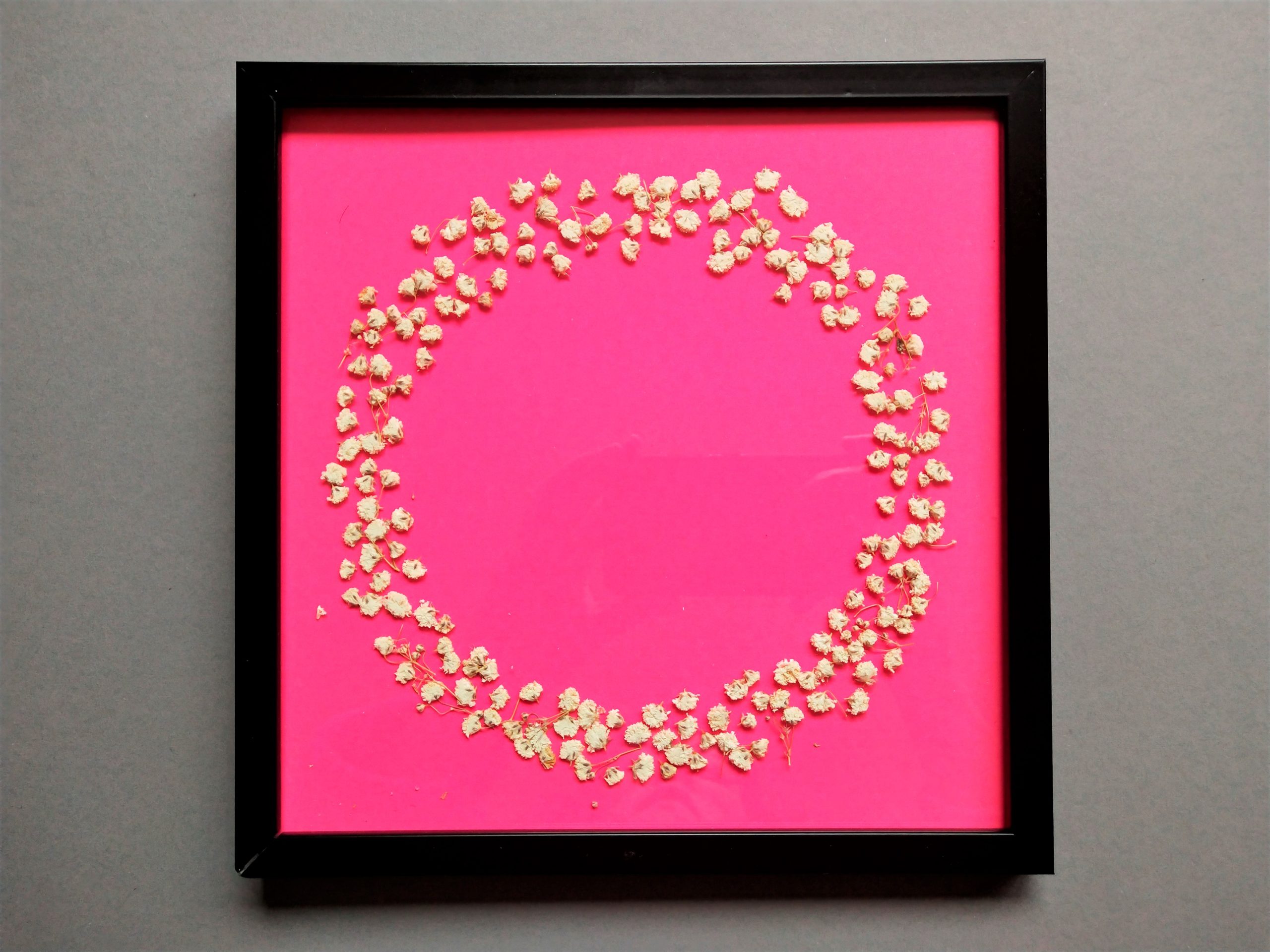 Dieses Herbarium besteht aus einem Blütenkranz aus getrockneten Schleierkrautblüten (Gypsophila). Das Schleierkraut erfreut sich in den letzten Jahren an großer Beliebtheit und besticht immer wieder durch seine zarte Schönheit.
