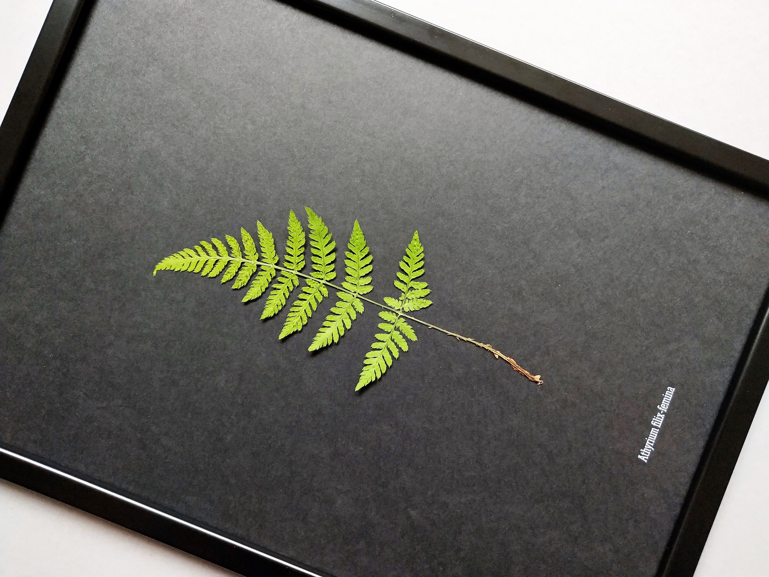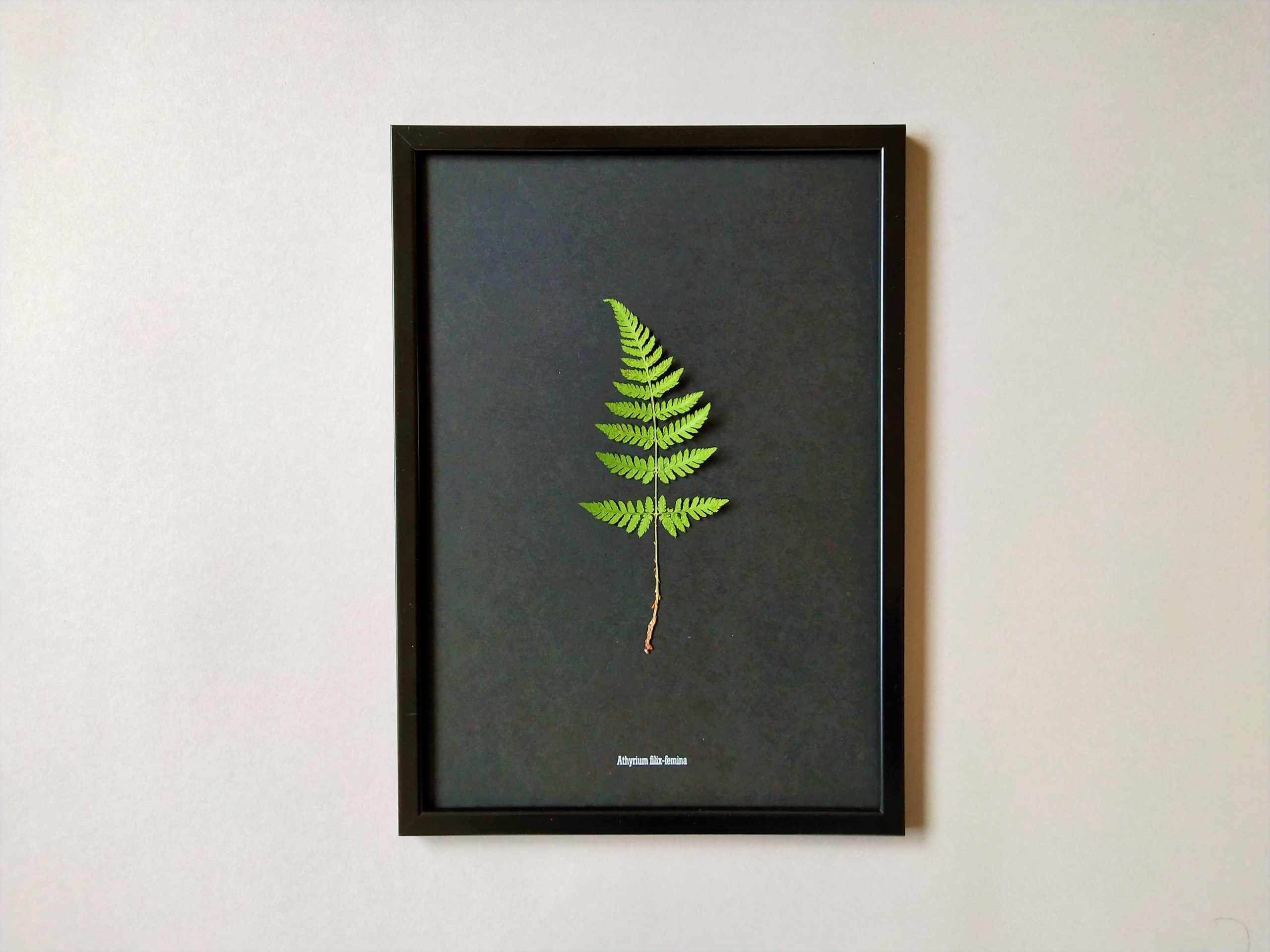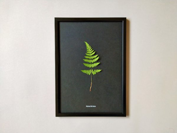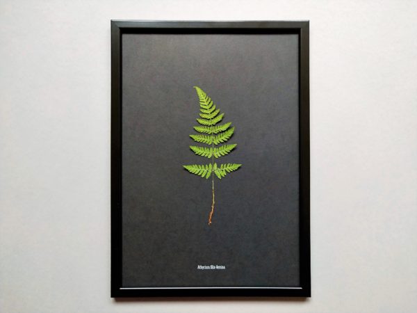Dieses Herbarium besteht aus einem nach traditioneller Art konservierten Waldfarn (Athyrium filix-femina). Das Waldfarn überzeugt mit seiner Schlichtheit – denn genau diese macht dieses Herbarium zu einem echten Hingucker an Ihrer Wand!